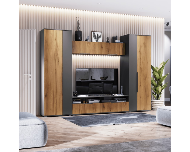 Модульная гостиная Моника-1 темно серый лофт / дуб золотистый
