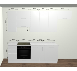 Размер: Ширина: 2800 мм, Высота: 2336 мм. Глубина 600 мм (со столешницей)